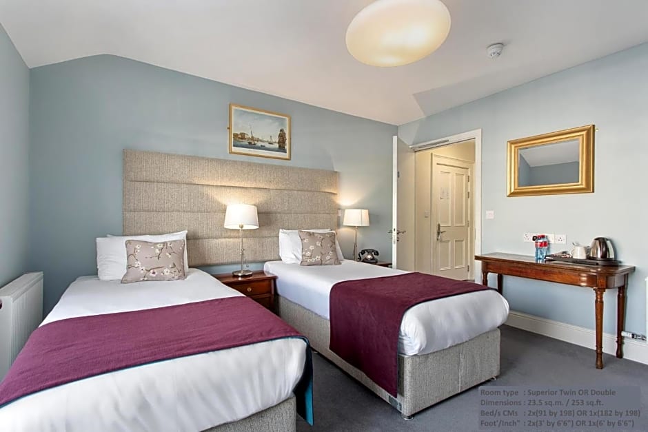 The hotel offers a variety of rooms including Standard Double or Twin Rooms, Standard Double Rooms, Classic Triple Rooms, Standard Single Rooms, Superior Double or Twin Rooms, Superior Double Rooms, Classic Single Rooms, Superior Triple Rooms, Large Family Rooms, Standard Family Rooms, and Standard Triple Rooms. The occupancy ranges from single occupancy to accommodating up to 4 adults and 3 children. Smoking is not allowed in any of the rooms. Bed sizes include Twin, Double, Queen, and King size beds. Room sizes vary from 97 sqft to 355 sqft.