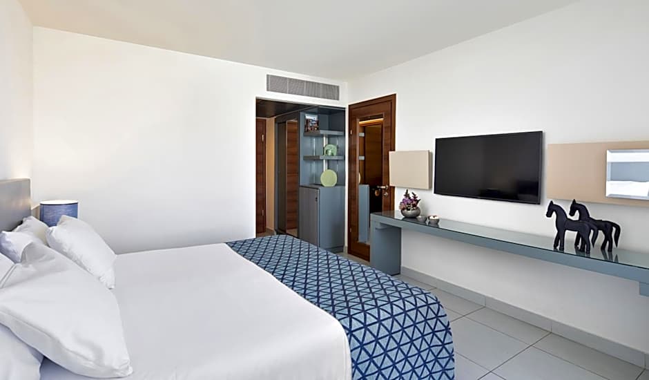 The hotel offers a variety of room types including Terrace Rooms (single occupancy) with double beds and twin beds, Suites with Sea View featuring queen-size beds and sofa beds, Family Rooms with Sea View for 2 adults and 2 children, Quadro Superior Rooms for 2 adults and 2 children, Junior Suites (single occupancy) with double beds, Standard Rooms with Sea View (single occupancy) featuring queen-size beds and twin beds, Triple Quadro Superior Rooms, Junior Suites with Sea View for 2 children and 2 adults, Superior Rooms with Sea View for 2 adults and 1 child, and Superior Double or Twin Rooms (single occupancy) with double beds and sofa beds. All rooms are non-smoking.