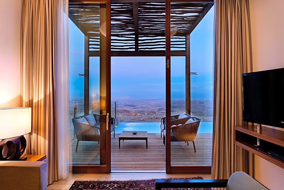 When you're not soaking up the sun by the adults-only outdoor pool or indulging in a heavenly spa treatment, you can savor exceptional flavors at the onsite Rosemarine restaurant. With a menu inspired by local ingredients and crafted to excite your palate, dining here is an experience in itself! Picture yourself enjoying a candlelit dinner as the sun sets over the breathtaking Ramon Crater. The restaurant’s stunning ambiance and delightful offerings are sure to tickle your taste buds and provide an unforgettable culinary adventure.