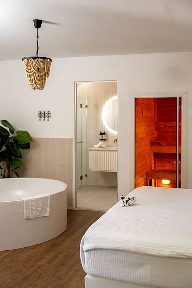 Guests at the Estate Spa - Boutique Hotel can spend their time indulging in leisure amenities such as spa and wellness packages, outdoor swimming pool, hot tub/jacuzzi, and sauna. The hotel also offers beach umbrellas and beach chairs/loungers for relaxation. For those looking for a drink, there is a bar on-site.