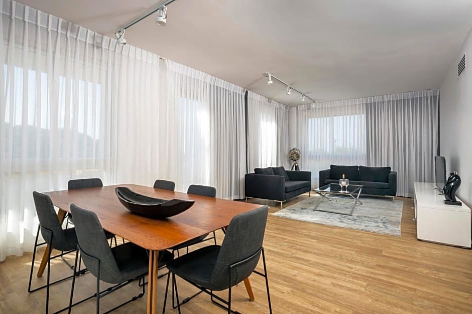 Payment is cashless; cash is not accepted. American Express, Visa, and Mastercard are accepted. Shuttle service and airport shuttle are available for an extra charge, and meeting/banquet facilities and sauna are also available for an extra charge. A range of accommodations is available, from Deluxe and Superior rooms to Executive suites and Apartments, including options like Studio with City View and Apartment with Sea View, plus the Presidential Suite.