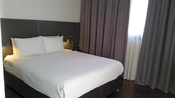 Comfortable, elegant room with 1 double or 2 single beds, with city view, flat screen TV with satellite channels, phone, safe, and en-suite bathroom. Partial seaside view. Room size is 15 m2.