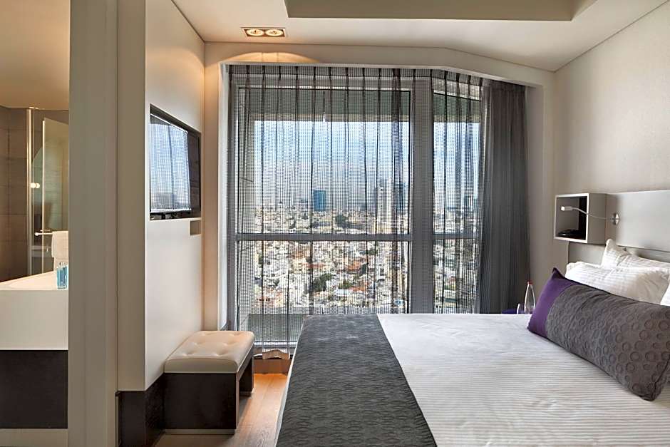 Modern, elegant rooms with special design touches that enable true comfort. The rooms include a queen-size double bed, luxurious bathroom, work area, an LCD TV, connection to Israeli and international channels, Wi-Fi connection and a mini-bar. Most of the rooms include balconies overlooking the view – the amazing sunsets of the Mediterranean Sea and views of the city of Tel Aviv.