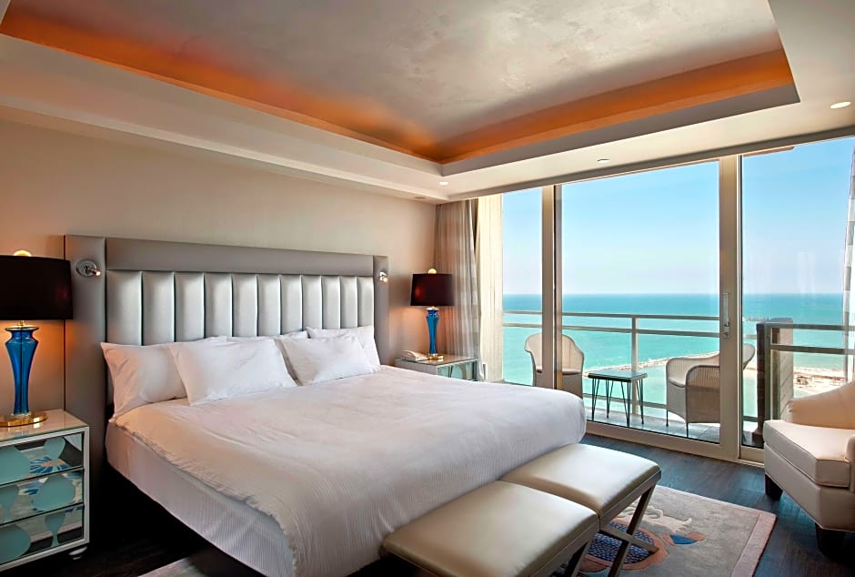 KING PREMIUM TEL AVIV SUITE WITH SEA VIEW, COMP WIFI/ACCESS TO VISTA LOUNGE/LIVING ROOM, 87 SQM/BALCONY/DINNING TABLE/2 HDTVS