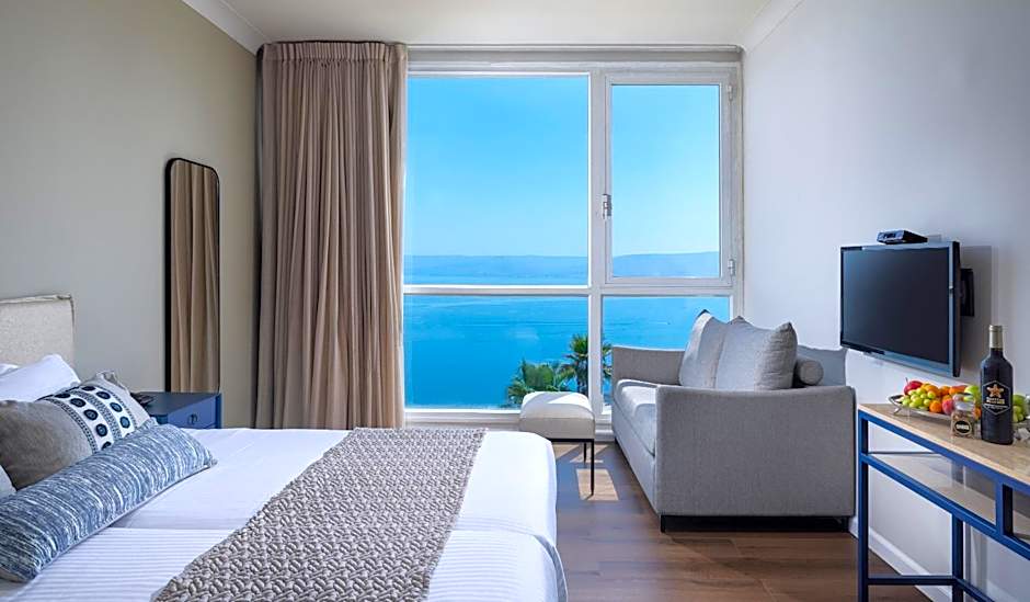 Discover the charm of the King Solomon Hotel Tiberias, a 4-star oasis just 0,7mi from the lively heart of Tiberias, Israel. Priced from an inviting minimum of 820 ILS, this hotel offers a beautiful lakeside setting with stunning views that will make your stay unforgettable. Designed with comfort and convenience in mind, the hotel boasts free Wi-Fi, complimentary parking, and a kids' club to keep the little ones happy while you unwind.