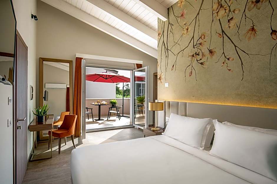 An outdoor seasonal pool provides a refreshing retreat with an adults-only policy for a tranquil vibe. On-site private parking and Wi-Fi are free, and a fitness center is available at no extra charge, along with a 24-hour front desk. Rounding out the conveniences are air conditioning, soundproof rooms, a terrace, a sun deck, a balcony, a bar, and non-smoking rooms.