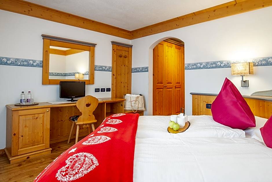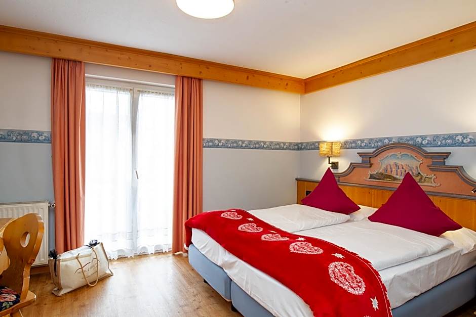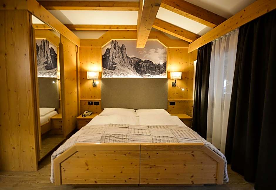 Alpine-style room with a satellite LCD TV and a private bathroom. Some rooms have balconies with Dolomite views. Please specify bed preference when booking.