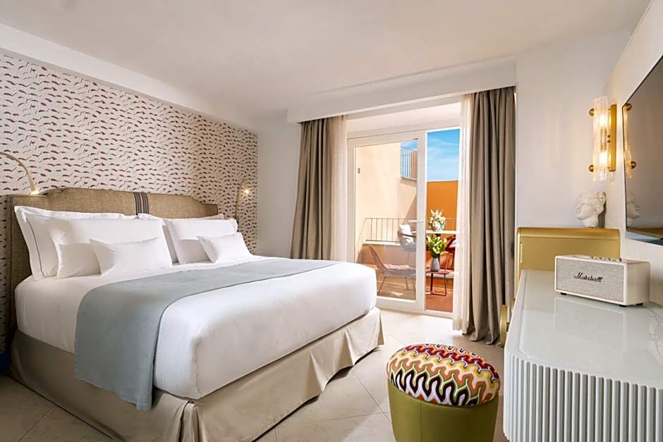 Room options span a diverse lineup, including Superior with Garden View and Balcony, Junior Suite with Sea View, and various sea-view suites such as Monacone Suite and Tragara Suite, plus Deluxe Ocean View. The property accepts Cash and major cards including Visa, American Express, Diners Club, Mastercard, and CartaSi. Spa and massage services are available for an extra charge, rounding out the island escape with wellness options.