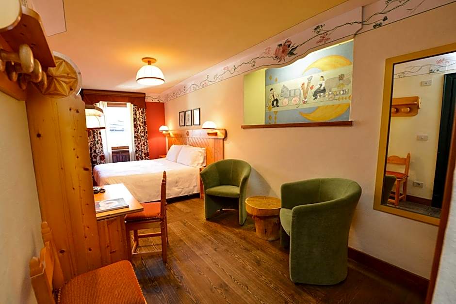 Compact double room overlooking the village square. All elegant rooms come with wooden furnishings, satellite TV and a fully equipped private bathroom.