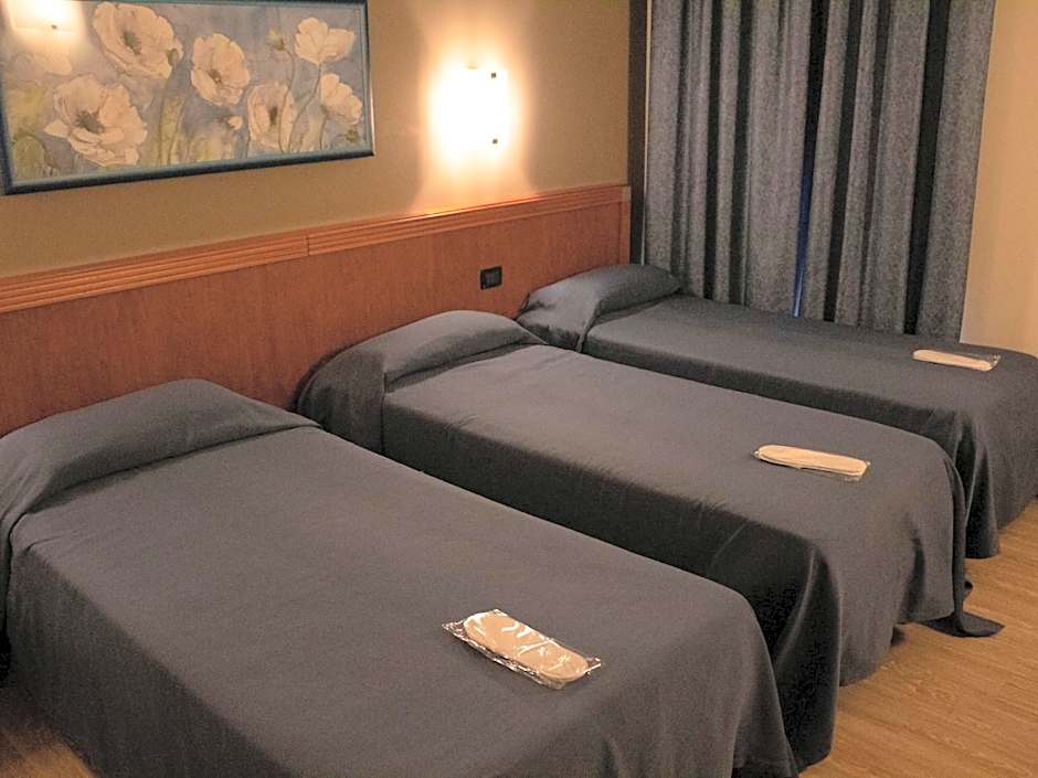 Hotel Motel Fiore offers different types of rooms including Triple Rooms, Twin Rooms (for single occupancy), and Double Rooms (for single occupancy). All rooms are non-smoking and have a size of 183 square feet. The Triple Room accommodates 3 adults and 1 child, with 1 Twin bed and 1 Queen size bed. The Twin Room and Double Room both accommodate 1 adult and 1 child, with the Twin Room having 3 Twin beds and 1 Queen size bed, while the Double Room has 1 Queen size bed.
