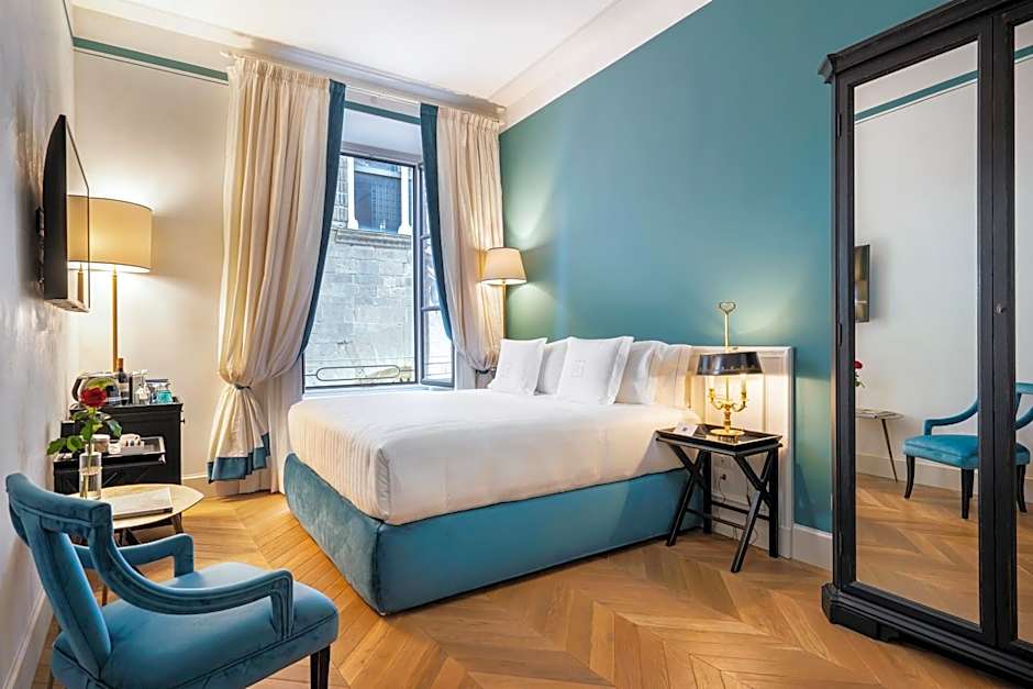 At Corte Calzaiuoli Elegant Suites, the hotel offers a Junior Suite, Superior Double Room, and Deluxe Double Room. None of these rooms allow smoking. The Junior Suite has a room size of 431 sqft and can accommodate 2 adults and 1 child, while both the Superior and Deluxe Double Rooms have a room size of 226 sqft and 323 sqft, respectively, and can accommodate 2 adults with no children. All rooms are furnished with a King size bed.