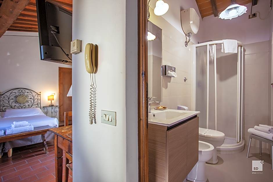 This room is located on the second floor. It has a traditional Tuscan design with wooden furniture and wrought-iron beds. Free Wi-Fi is included as well as satellite TV and air conditioning.