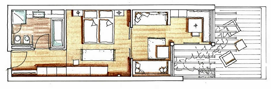 With special care to materials and sourcing, this room is furnished in wood, and has a spacious balcony. The private bathroom comes with bath or shower and a bidet.