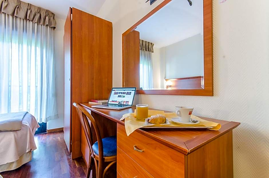 Accommodating different travel preferences, Hotel Federico II provides a choice of room types. The Standard Triple Room, spacious at 269 square feet, features four twin beds and a queen-size bed, accommodating up to three adults. Alternatively, the Standard Double or Twin Room for single occupancy, with a room size of 215 square feet, offers a cozy setting with a queen-size bed and twin bed, ideal for solo travelers. Both rooms provide a comfortable retreat after a day of exploring the city or conducting business in L'Aquila.