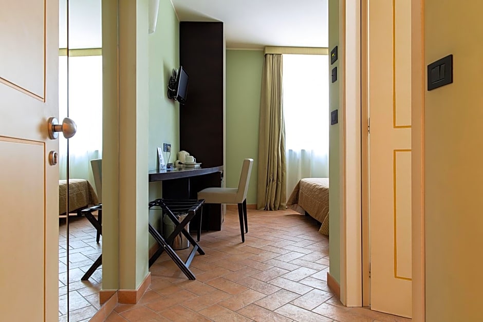 The Magione Papale Relais hotel offers a variety of room types including Triple Rooms, Double or Twin Rooms, and Quadruple Rooms - all non-smoking. The Triple Room accommodates 3 adults and 1 child, with 4 twin beds, 1 queen size bed, and a sofa bed. The Double or Twin Room accommodates 2 adults and 1 child, with 1 queen size bed, 2 twin beds, and a sofa bed. The Quadruple Room accommodates 4 adults and 1 child, with 4 twin beds, 2 sofa beds, and 1 queen size bed.