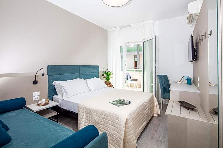 Guests can choose from a diverse range of accommodations, including Standard Room, Double Room variants (including those with terraces or partial sea views), Triple and Quadruple setups, a Duplex, a Suite, and more. Every room is non-smoking and can accommodate different group sizes, from single travelers to larger families, with options that offer partial or full sea views and outdoor spaces for guests to enjoy.