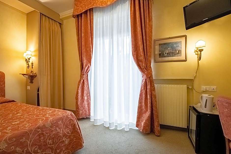 Single Room with air conditioning, a satellite TV and a classic décor. It features a single bed and the private bathroom comes with a hairdryer.
