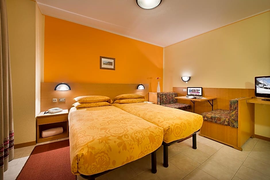 Garni Oasi offers Twin Rooms, including an attic option, and Double Rooms. All rooms are non-smoking and accommodate 2 adults with no children, featuring either 2 Twin beds or 1 Double bed. The room sizes for both Twin and Double Rooms are 194 sqft.