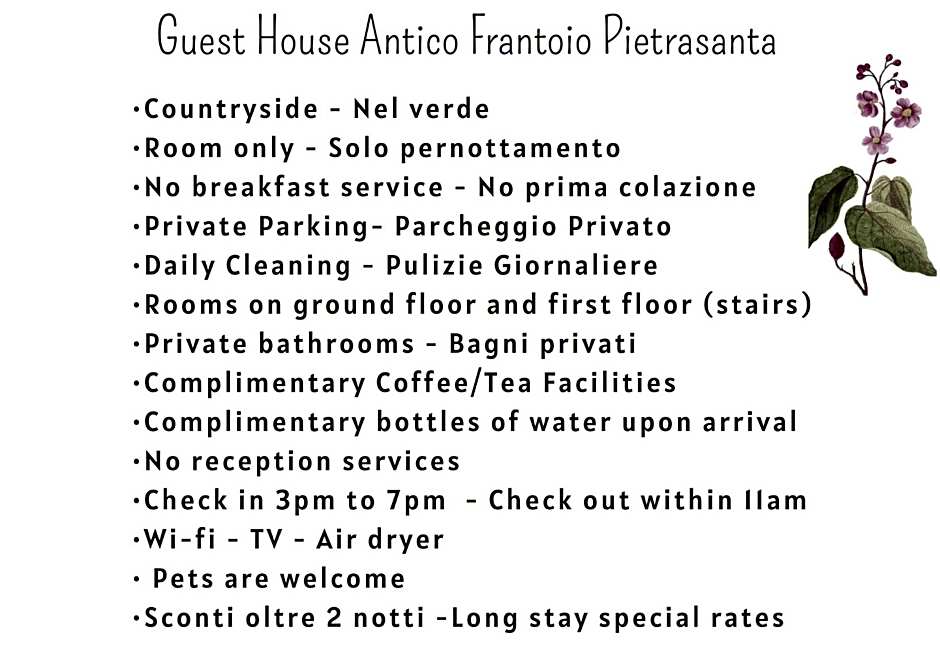 Guest House Antico Frantoio Pietrasanta Affittacamere is a 3-star guest house in Marina di Pisa, Italy, located at Via Cannoreto, 369. It sits about 19.1마일 from the city center.