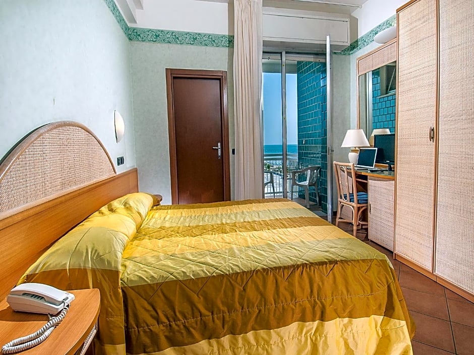 Hotel Corallo offers Deluxe Double or Twin Rooms with Sea View. These rooms have a size of 172 sqft and can accommodate 2 adults and 1 child. Smoking is not allowed in these rooms and they are equipped with 1 Queen size bed.