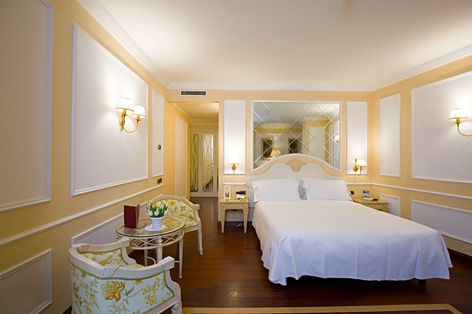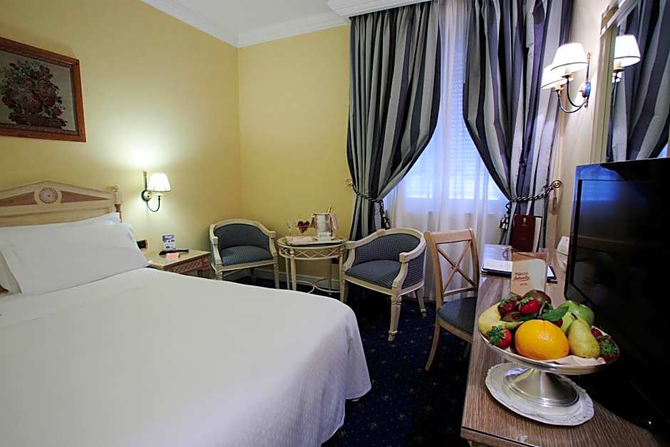 The Palazzo Alabardieri hotel offers classic double or twin rooms which have a room size of 172 sqft and can accommodate 2 adults and 1 child. These rooms have 1 queen size bed and 2 twin beds. Additionally, the hotel also has superior double or twin rooms with a slightly larger size of 215 sqft. The junior suite with jacuzzi is also available, offering a room size of 366 sqft and a queen size bed. Smoking is not allowed in any of these rooms.