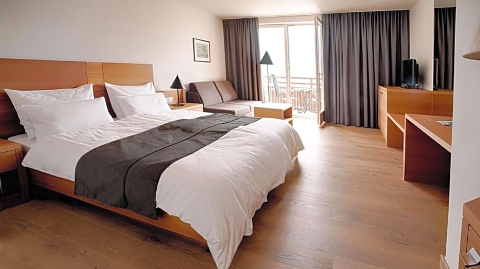 The spacious double room offers a seating area, a wardrobe, a balcony with garden views as well as a private bathroom featuring a walk-in shower. The unit offers 1 bed.