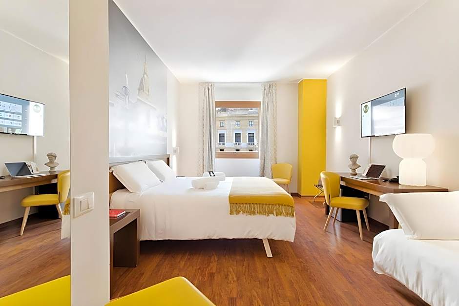 The B&B Hotel Palermo Quattro Canti offers several types of rooms. They have Double Rooms, Twin Rooms, Triple Rooms, Quadruple Rooms, Single Rooms, and Suites. All rooms have a non-smoking policy. The Double Rooms and Suites have Queen size beds, while the Twin Rooms have two Twin beds. The Triple Rooms and Quadruple Rooms have a combination of Twin beds and Queen size beds, or Twin beds and a Sofa Bed.