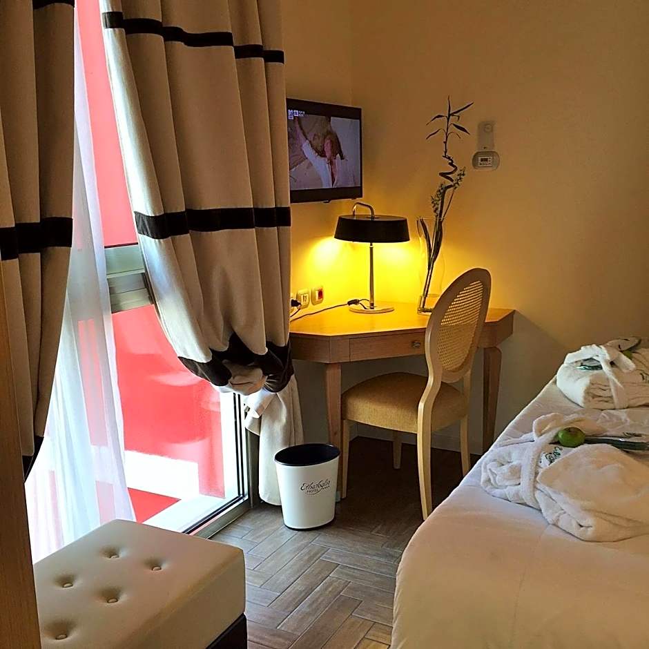 The Erbavoglio Hotel offers a variety of room types including Single Rooms with Balconies, Double Rooms with Balconies, and Superior Double or Twin Rooms with Balconies. Smoking is not allowed in any of these rooms. The Single Room accommodates 1 adult and has a Twin bed, while the Double Room accommodates 2 adults and has a Queen size bed and 2 Twin beds. The Superior Double or Twin Room also accommodates 2 adults and has a King size bed.