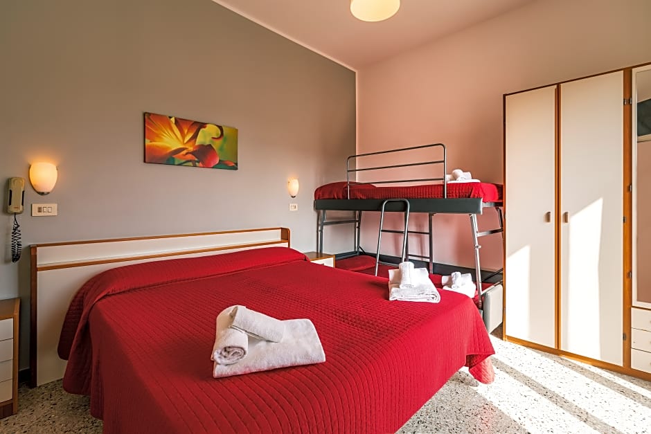 The Hotel Ausonia offers a variety of room types including Single Rooms, Triple Rooms, Double or Twin Rooms, and Quadruple Rooms. Smoking is not allowed in any of the rooms. Single Rooms accommodate 1 adult with 1 Twin bed, Triple Rooms accommodate 3 adults with 4 Twin beds and 1 Queen size bed, Double or Twin Rooms accommodate 2 adults with 1 Queen size bed and 2 Twin beds, and Quadruple Rooms accommodate 4 adults with 4 Bunk beds, 1 Queen size bed, and 2 Twin beds.