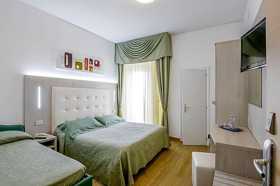 Hotel Corinna is a 3-star beachfront hotel in Rimini, Italy, located about 1,2mi from the city center. The property pairs sun-soaked relaxation with practical comfort: a private pool and an outdoor pool (free), free Wi‑Fi, and air conditioning (free), plus direct access to the beach. Inside, guests can enjoy a bar, terrace, and balcony with a view, along with non-smoking rooms, a 24-hour front desk, free beach umbrellas and chairs, elevator, bidet, free toiletries, and other thoughtful touches.