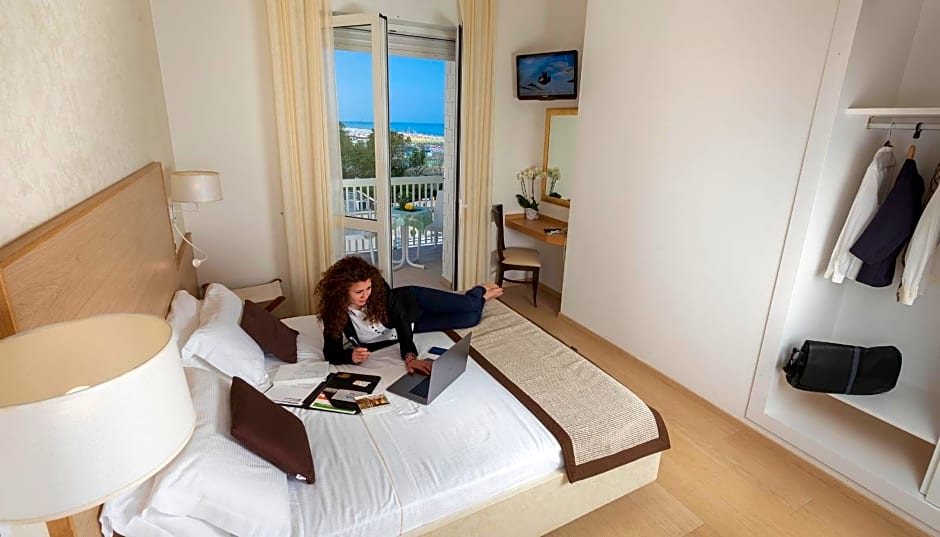 Families and adventure seekers will find options to suit, with playground and babysitting/child services (extra charges) and activities like mini golf and tennis (extra charges). Direct beach access, balconies with sea views, and the option of a water park and water sports (extra charges) round out the seaside experience for an easy, enjoyable Rimini escape. This makes for a playful yet relaxed base to explore the coast, whether traveling solo, as a couple, or with family in tow.