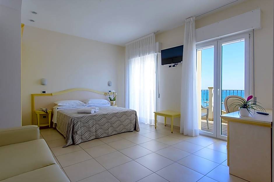 The triple room offers air conditioning, a mini-bar, a balcony with sea views as well as a private bathroom boasting a bidet.
