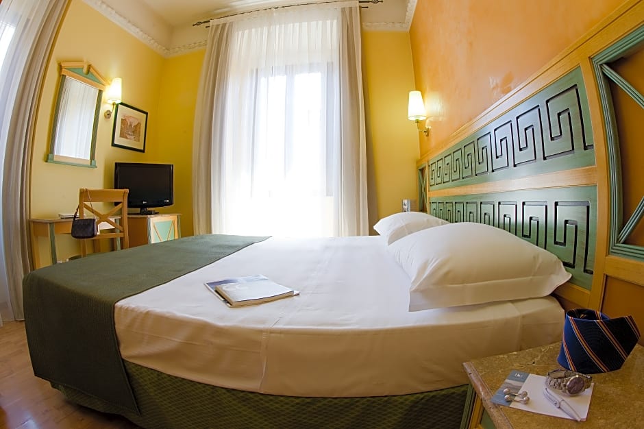 The Exe Domus Aurea hotel offers single, double, and triple rooms. Single rooms have a Twin bed and are for single occupancy only. Double rooms have a Queen size bed and can accommodate 2 adults and 1 child. Triple rooms also have a Twin bed and a Queen size bed, accommodating 3 adults. Smoking is not allowed in any of the rooms.