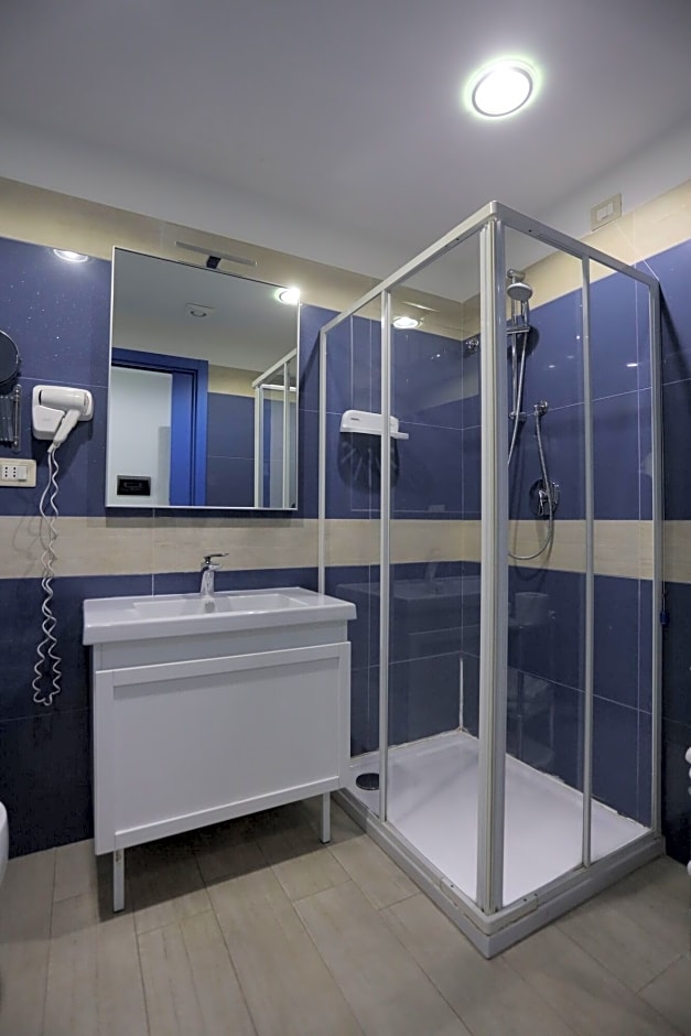 Triple rooms are equipped with air conditioning, mini-bar, flat screen TV. Some of them have a window overlooking Via Lungomare Colombo, others have a balcony or window overlooking the sea. This room features a kit for preparation os infusions.