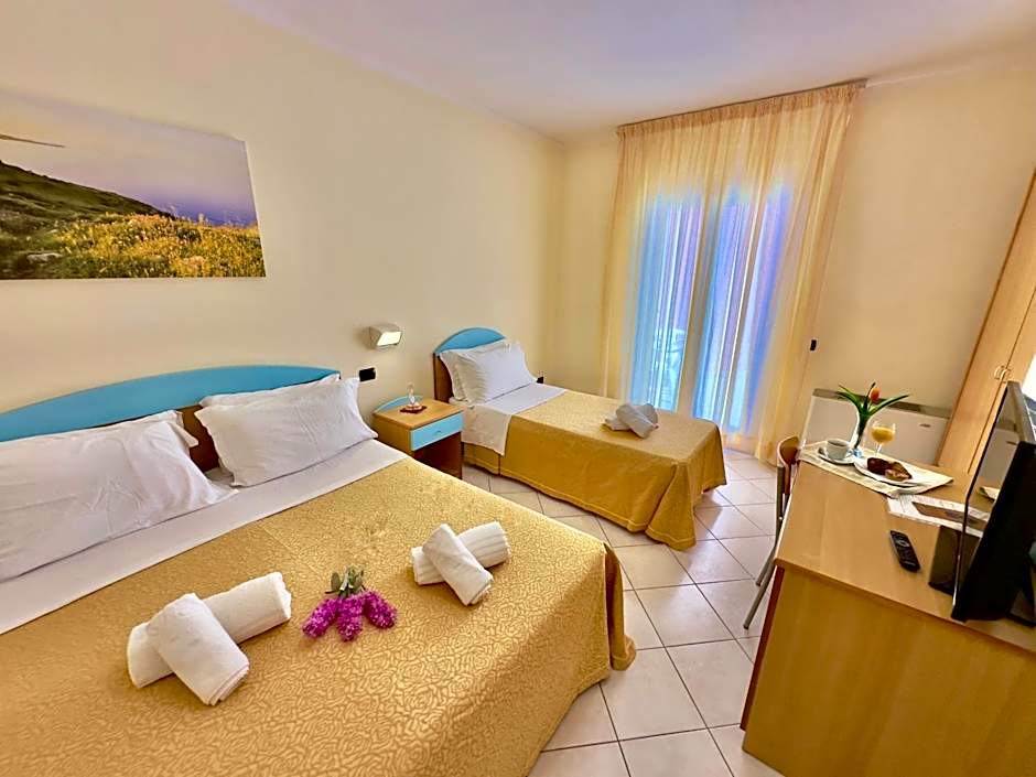 Double room equipped with air conditioning, TV, telephone, WIFI, with private bathroom with shower, hairdryer and bathroom linen. The room does not have a balcony but enjoys a splendid sea view.