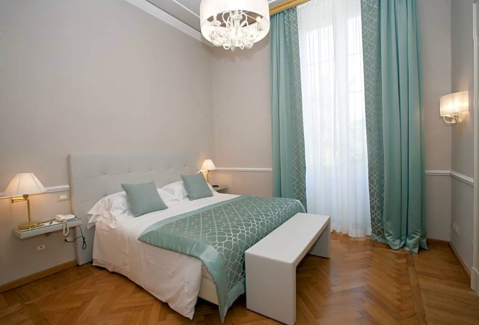 This elegant room has parquet floors, a Murano glass chandelier, and a marble bathroom. It does not have a sea view. Please specify bed preference when booking. This room cannot accommodate extra beds.