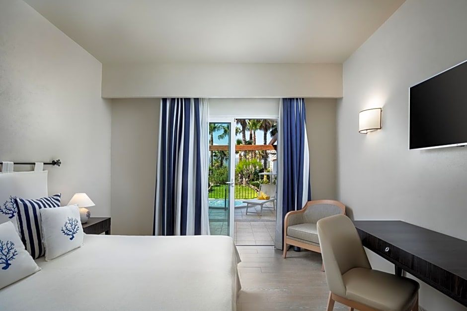 Ground-floor room with a patio and private spa overlooking the garden and Mediterranean Sea.