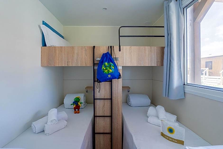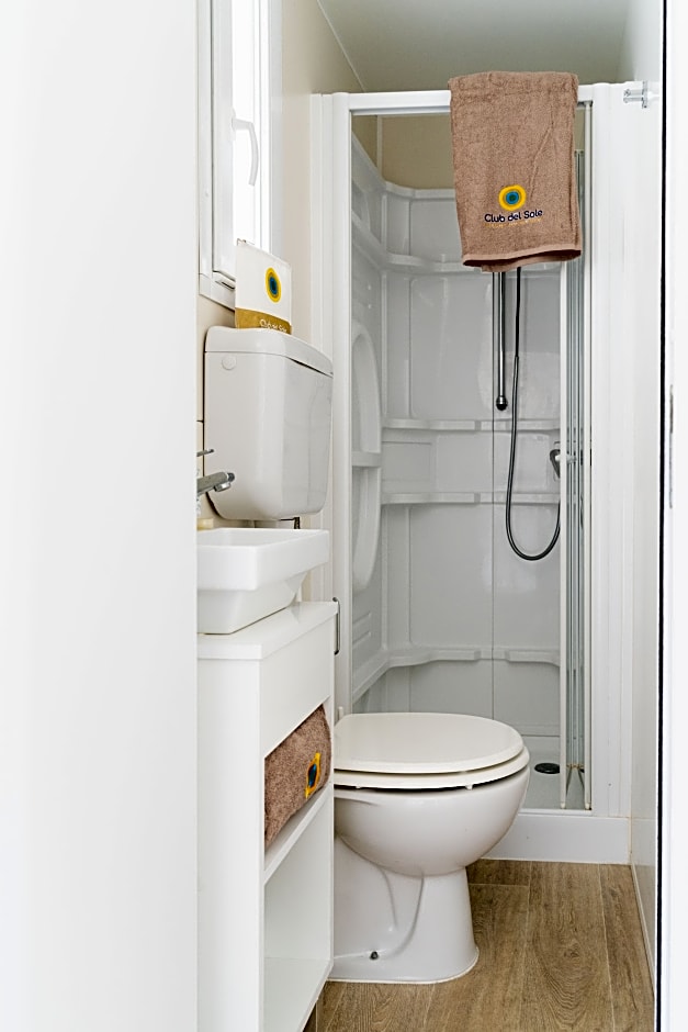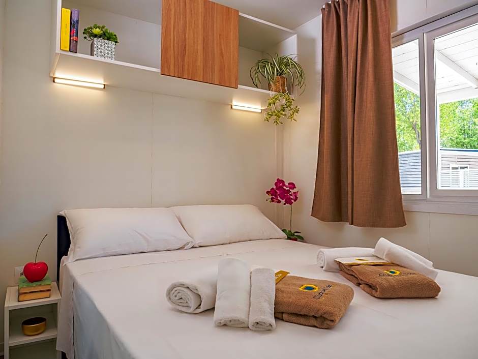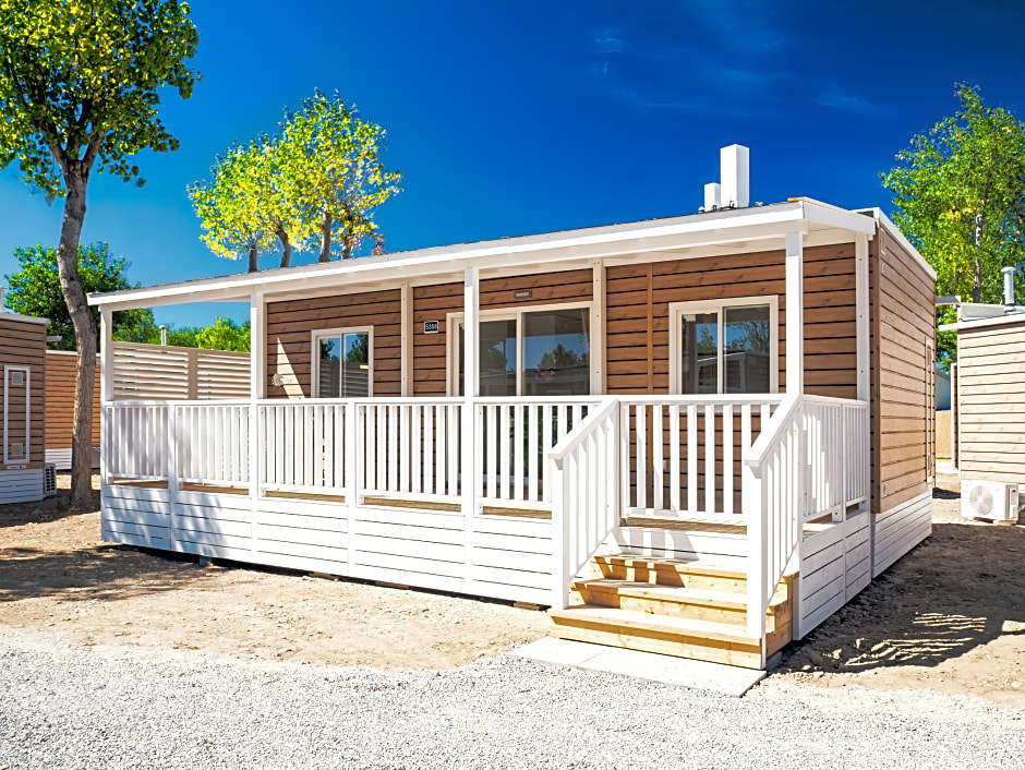 Featuring a private entrance, this air-conditioned mobile home consists of 1 living room, 2 separate bedrooms and 2 bathrooms with a shower and a bidet. Meals can be prepared in the well-fitted kitchen, which comes with a stovetop, a refrigerator, a dishwasher and kitchenware. Boasting a terrace, this mobile home also provides a seating area, a dining area and a TV. The unit offers 3 beds.