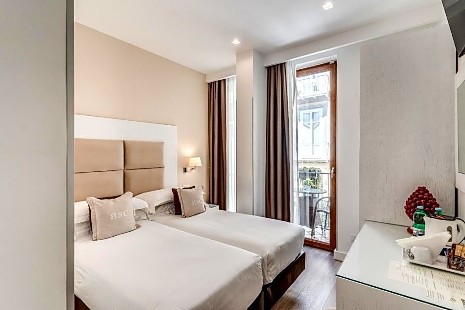 The twin room provides a tea and coffee maker, a wardrobe, as well as a private bathroom featuring a walk-in shower and a bidet. The air-conditioned twin room offers a flat-screen TV with satellite channels, a private entrance, soundproof walls, a mini-bar as well as an inner courtyard view. The unit offers 2 beds.