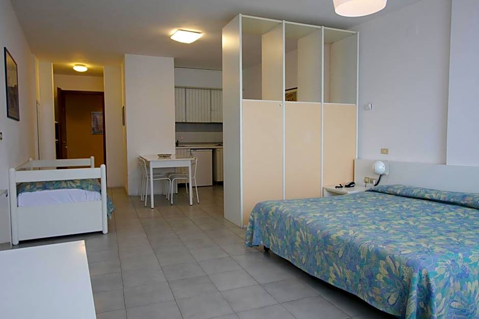 Self-catering apartment with sofa bed in the living room, private balcony, bathroom, and satellite TV. Cleaning is provided weekly.