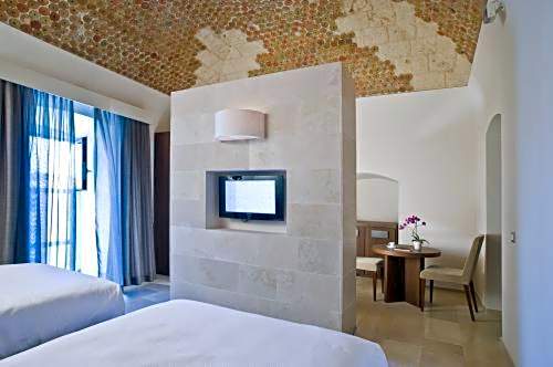Spacious suite with designer furnishings, free Wi-Fi, air conditioning, and a flat-screen TV with satellite channels. The window offers views of the sea. There is a free mini-bar. Please specify bed preference when booking.