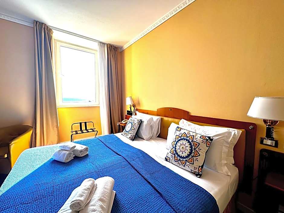 Indulge in comfort and enjoy stunning sea views in this spacious Deluxe Double Room. Accommodating 2 adults and 1 child, with a double bed and two twin beds.