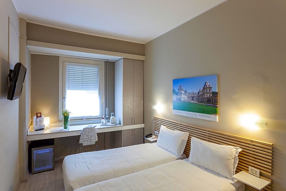 Three-star status, a central location in Turin, and practical features like elevator access to upper floors round out the stay.
