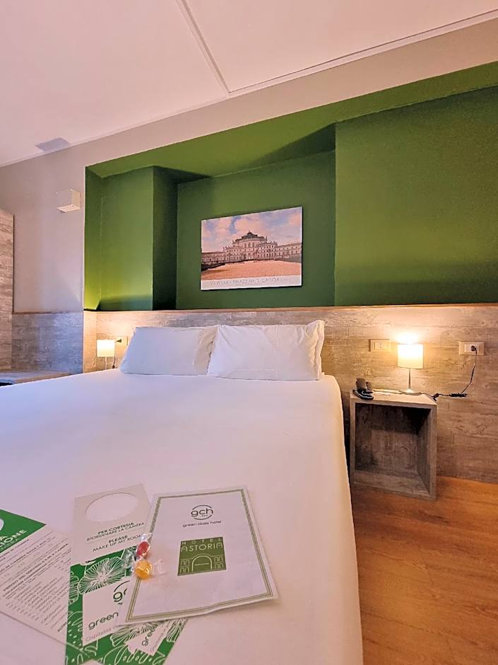 The Green Class Hotel Astoria offers a variety of room types. These include Triple Rooms that accommodate three adults and one child with a twin and queen-size bed, Twin Rooms for two adults with two twin beds, Double Rooms for two adults and one child with a queen-size bed, Single Rooms for single occupancy with a twin bed, and Basic Double Rooms for two adults with a double bed. Smoking is not allowed in any of the rooms. Room sizes range from 129 sqft to 194 sqft.