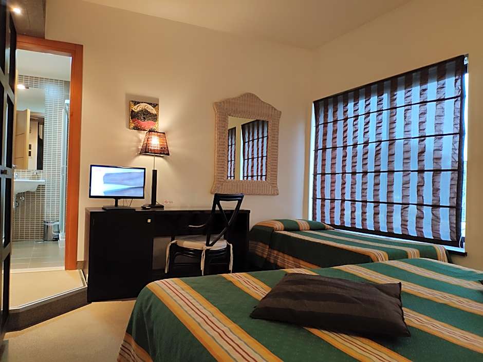 Double Classic is 161 square feet and includes either a queen-size bed 150-154 width or 2 single beds 80-130 width plus balcony, terrace, hairdryer, ironing set, and safe.