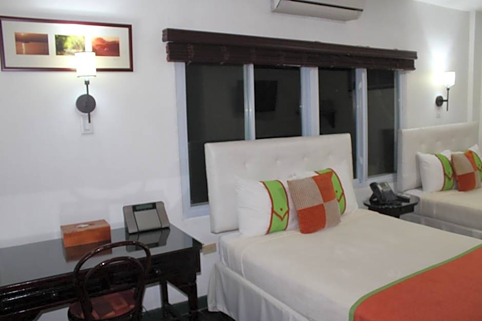 This air-conditioned room has two double beds and a picture window and includes cable TV, digital safe, microwave and refrigerator.