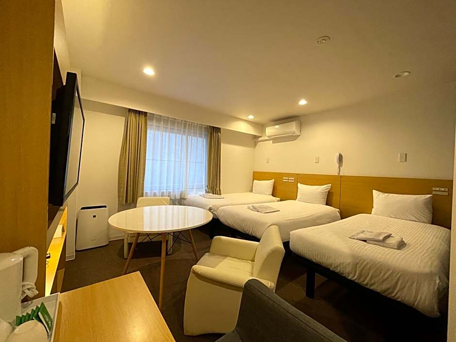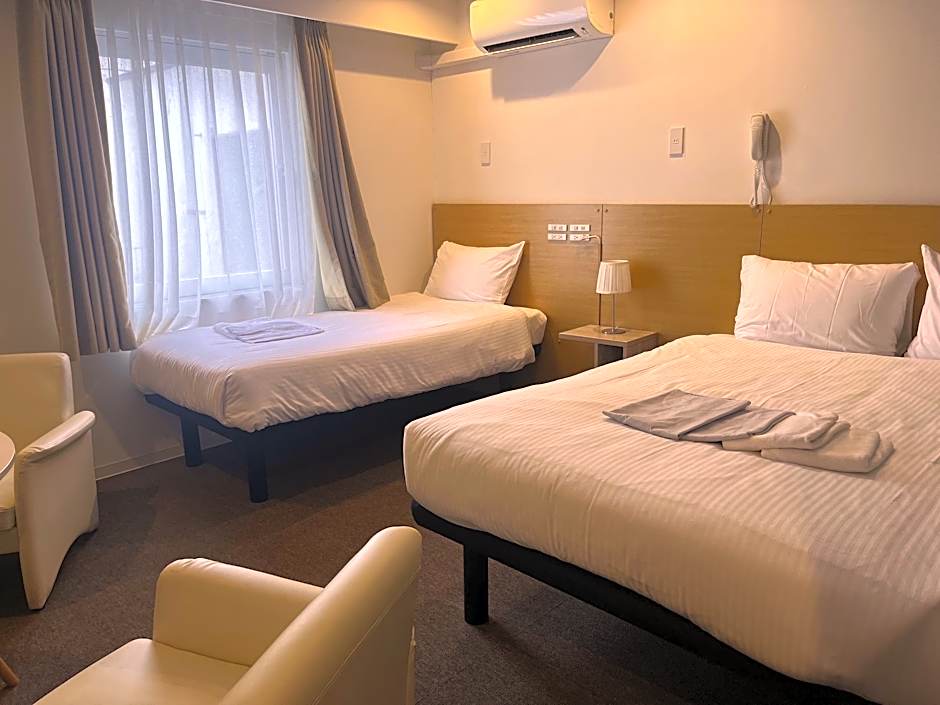 Featuring free toiletries, this triple room includes a private bathroom with a bath, a shower and a hairdryer. The triple room features air conditioning, a tea and coffee maker, yukata, as well as a flat-screen TV. The unit has 3 beds.