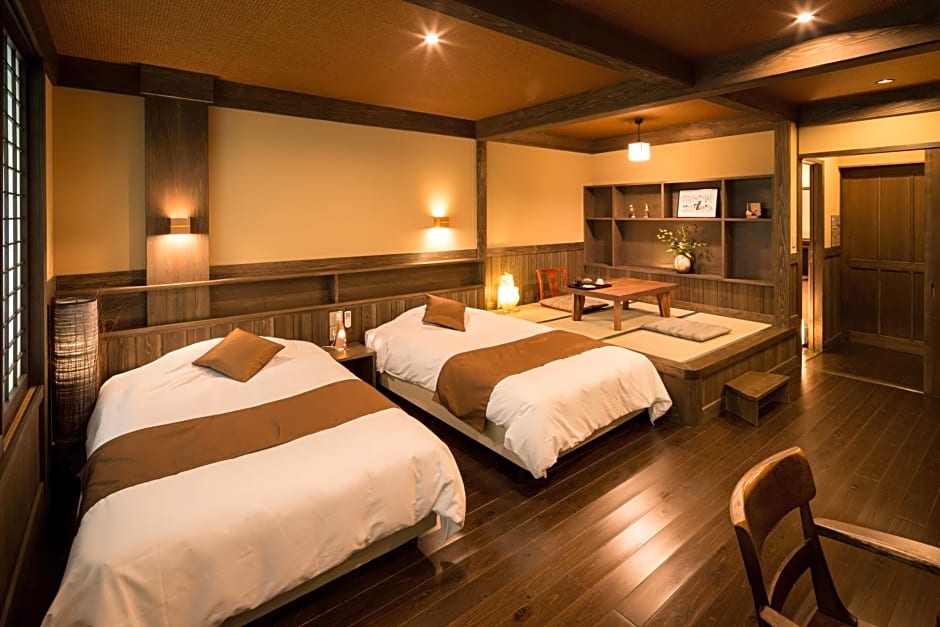 Featuring a relaxing ambiance, this larger room comes with a comfortable seating area with a low table and seating cushions. It is fitted with tatami (woven-straw) flooring and traditional futon bedding. A TV and a fridge are included. It has a private toilet, and bathroom is shared. Please note that if a nonsmoking room is requested, the room will be deodorized using an odor eliminating spray.