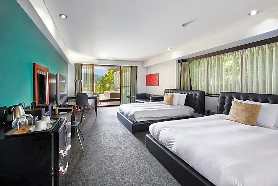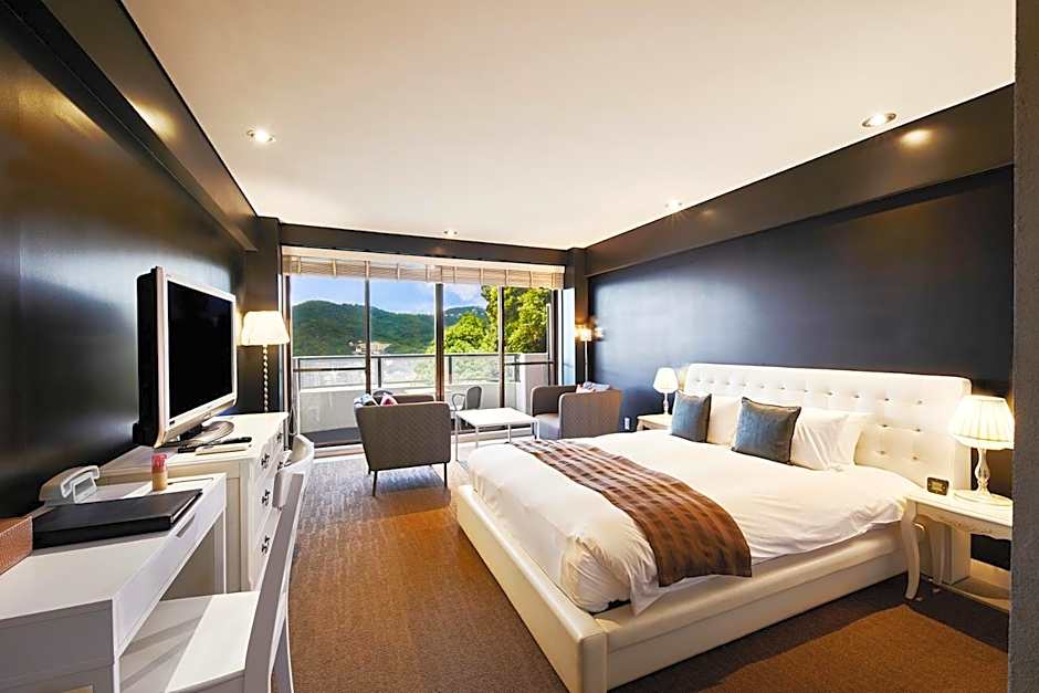 A variety of rooms and suites awaits, from Deluxe King to Resort Corner Twin Ocean View, plus Deluxe Jacuzzi rooms and the Deluxe Suite with a Hot Spring Bath, offering options for different tastes and plans.