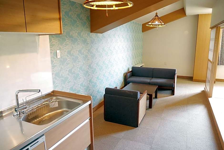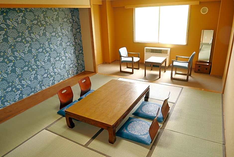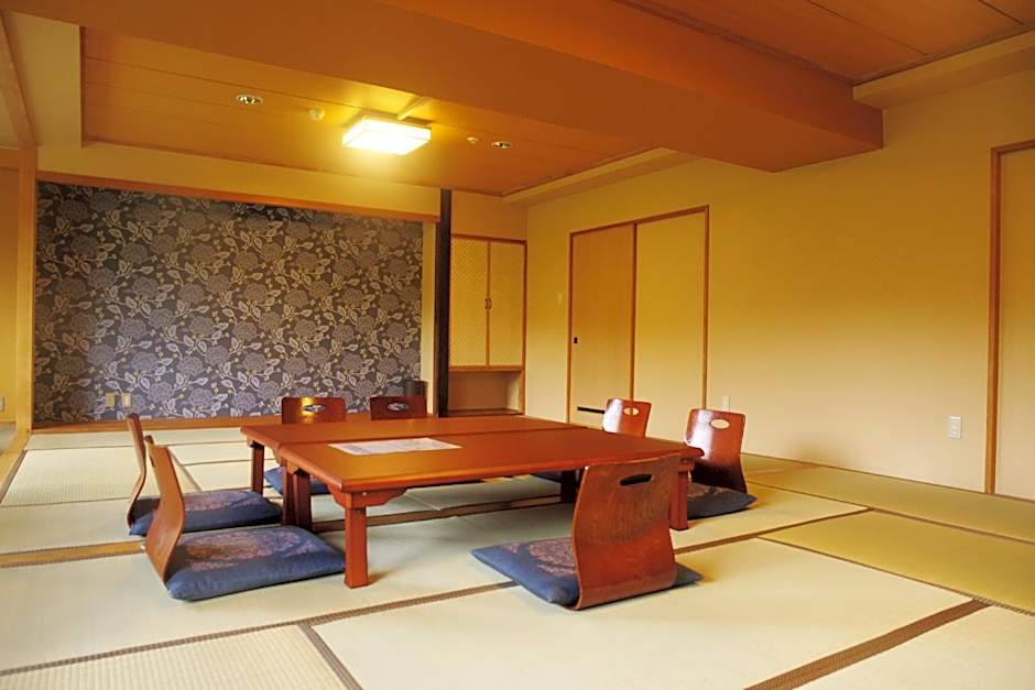 The quadruple room includes a private bathroom, well-fitted with a bath, a shower, a hairdryer and slippers. The quadruple room has tatami floors, a seating area, a wardrobe, heating as well as mountain views. The unit has 5 futons.